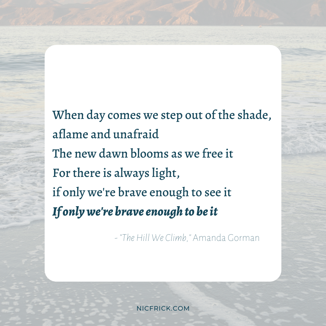 I keep coming back to Amanda Gorman’s poem from the Inauguration.